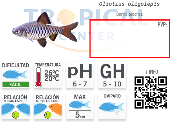 60 litros. Apto para acuarios comunitarios con luz tenue y abundante vegetación.