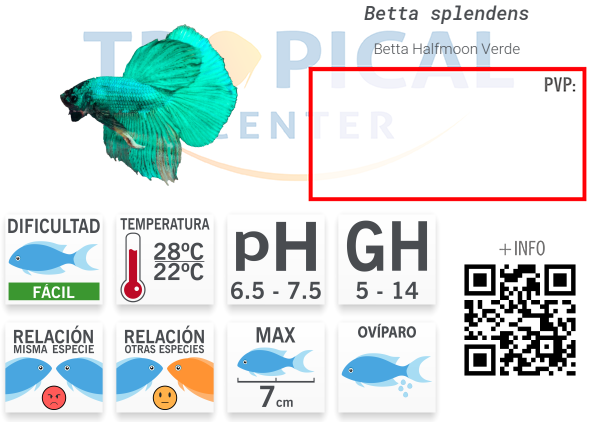 20 litros. Apto para acuarios comunitarios sin machos de su misma especie.