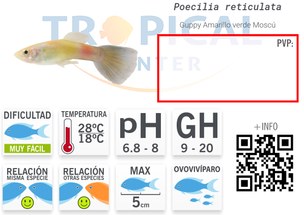 Guppy Amarillo verde Moscú (macho)