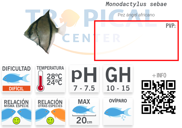 - 300 litros. Necesita acuario salobre con fondo de arena, raíces sumergidas y buen espacio de nado.